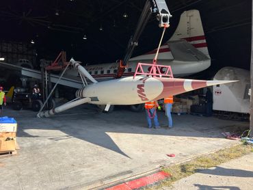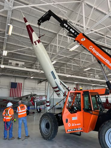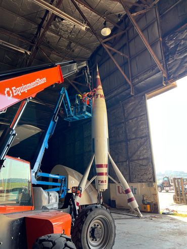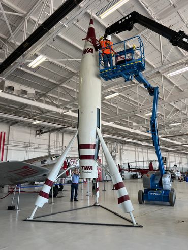 The Moonliner II spent the next 25 years outside, unprotected from the harsh weather conditions, with minimal maintenance. Dan Viets, a Columbia, Missouri attorney who is a Disney historian and author, purchased the Moonliner II in 1997. Dan, along with Don Jourdan, then began a long, careful restoration process, eventually bringing the rocket back to its 1956 condition and sporting its original red and white TWA paint scheme. The Moonliner II was loaned to the Airline History Museum at the Charles B. Wheeler Downtown Airport – Wheeler Field in about 2005. On September 27, 2025, the rocket was relocated and loaned to the TWA Museum at 10 Richards Road where it can be seen inside Hangar 1 for museum guests to appreciate.